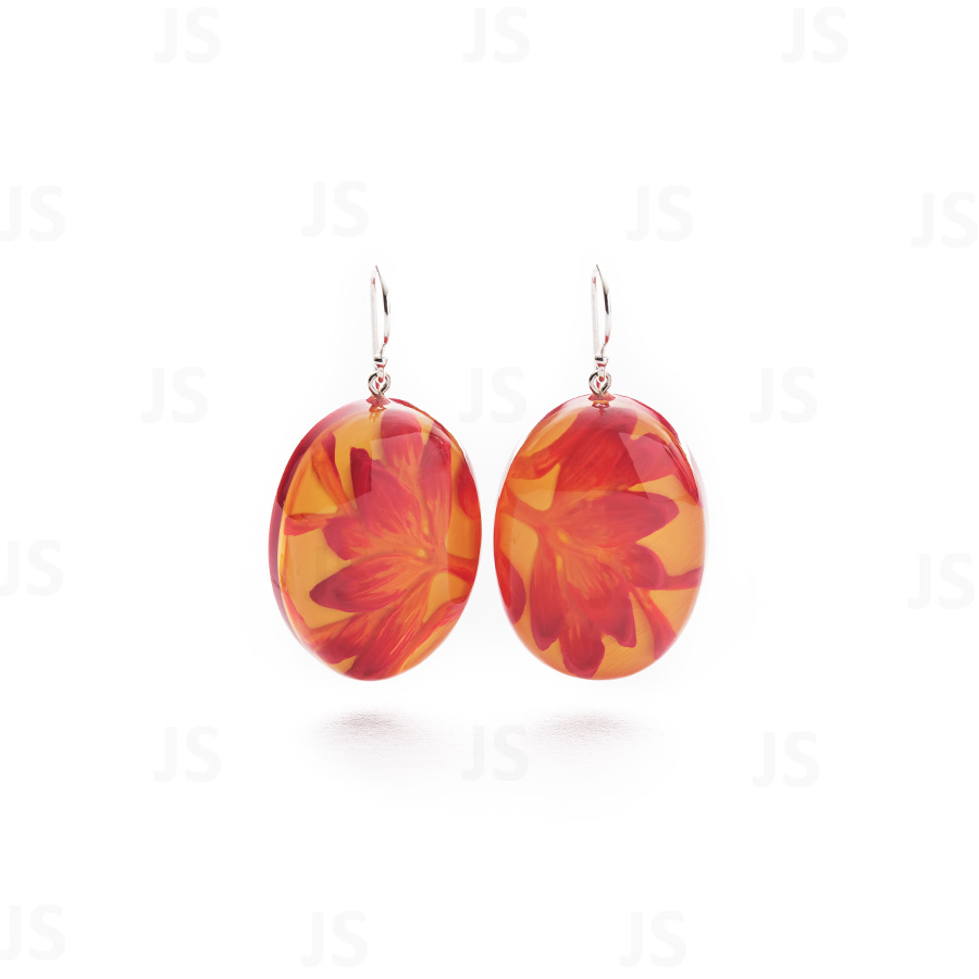 Earrings Round Orange Marble – Clip (Ø 2.2cm)