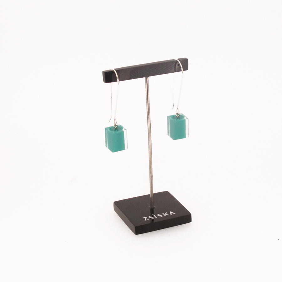 This delightful Zsiska earrings feature a colourful resin cube drop with sterling silver hooks.