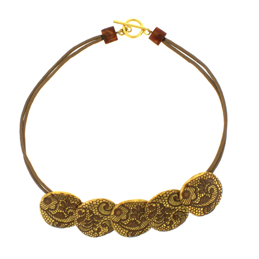 5 Small lace design beads are beautifully engraved and inlaid with color “stitching” over color resin. Looks like real lace. Strung on satin cord.